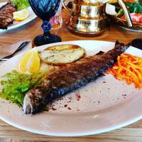 新鲜捕获的鳟鱼在煤上炸至酥脆。 午餐. (可以根据要求更换主菜)。