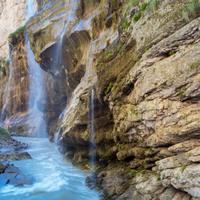 瀑布的历史与高加索山峰冰川的融化有关。 融水进入山洞,以如画的瀑布的形式从岩石上出来。