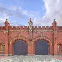 请注意: 鱼村,一个风格类似于战前Konigsberg建筑的建筑群;皇家门(外部检查)是加里宁格勒七个保存的城门之一。