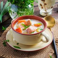 享受芬芳 卡累利阿的传统午餐 与lochikeitto,一个质朴的盘子,一个北方最好的传统的大门,由北方浆果,草药茶和各种强度的卡累利阿酊(18岁以上的人)制成的mors