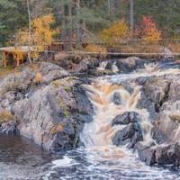 下一站是Akhinkoski(Ruskealsky)的瀑布。 让我们来看看传说中的苏联电影"和这里的黎明安静的地方。.."被枪杀,并拍照。 额外收费(500卢布/成人,400卢布/儿童,学生,养老金领取者),您可以沿着生态小径漫步,瀑布上有吊桥。