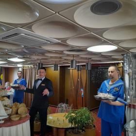 船上设有电影院(会议室),休闲室,带酒吧和舞池的音乐室,餐厅,桑拿浴室,理发师,熨衣室和医疗中心。 你可以在纪念品摊上买点东西来纪念游轮.